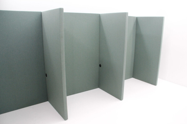 De zachte groene kleur geeft de werkplek een natuurlijke en rustige uitstraling. Het viltmateriaal draagt bovendien bij aan een warme, comfortabele sfeer en is vervaardigd met oog voor duurzaamheid. De scheidingswanden van 6 cm dik bieden voldoende akoestische isolatie, terwijl de royale afmetingen van de werkplekken zorgen voor voldoende ruimte en ergonomisch comfort.