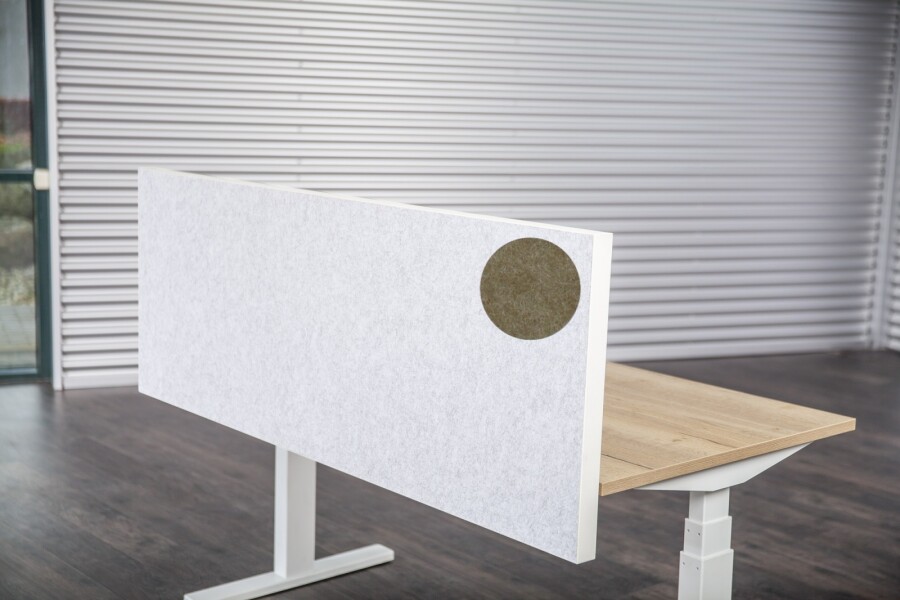 De Akopanel bureauschermen zijn gemaakt van gerecyclede materialen, de panelen zijn gemaakt van gerecyclede PET-flessen en de vulling bestaat uit gerecycled katoen. Door de open structuur wordt het geluid in het materiaal gedempt en hebben de schermen een hoge akoestische waarde.