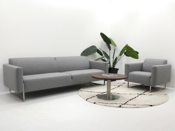 Deze Artifort Mare set is met zijn strakke lijnen en minimalistische details tijdloos. De bank en fauteuil zijn in ons atelier voorzien van de stof Nordwool en ogen daardoor compleet als nieuw. Nordwool is een rijke stof, bestaande uit wol, polyamide en polyesters. Deze combinatie maakt de stof warm, sterk en slijtvast. Met deze set creeër je het thuisgevoel op kantoor.