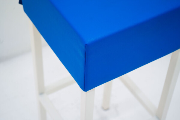 Frisse uitstraling – blauw kunstleder gecombineerd met een wit onderstel
