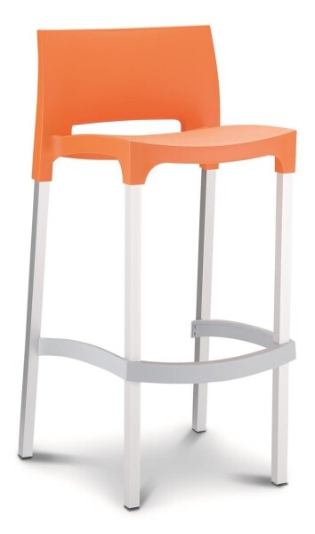 Barkruk Nice - oranje - 4-poot aluminium grijs - voor binnen en buiten