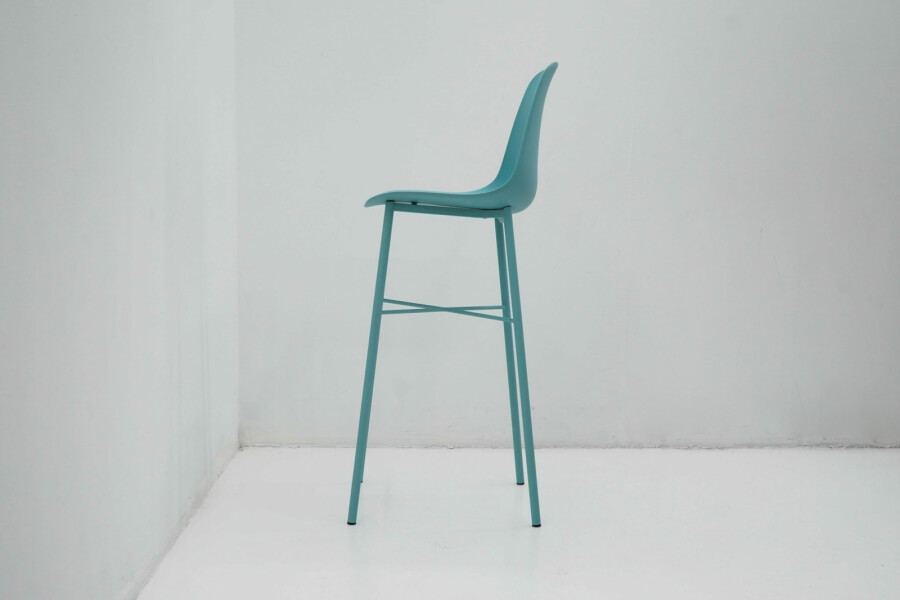 De blauwe kunststof zitting is slijtvast, onderhoudsvriendelijk en biedt prettig zitcomfort dankzij de uitgebalanceerde vormgeving. Het metalen vierpoots onderstel zorgt voor stabiliteit en een moderne, zakelijke uitstraling. Hierdoor is de stoel niet alleen visueel sterk, maar ook geschikt voor intensief gebruik in professionele omgevingen.