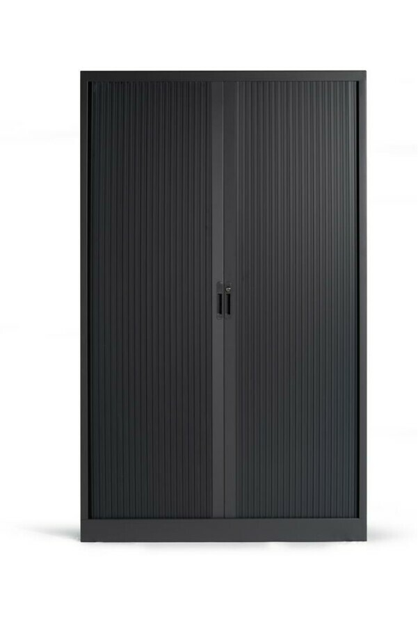 De THO Basic roldeurkasten zijn de meest verkochte roldeurkasten (nieuw) bij de THO! Deze degelijke kasten worden standaard geleverd met zwarte legborden. De roldeurkasten en zijn voorzien van binnenuit verstelbare justeerdoppen (stelvoeten) om kleine oneffenheden in de ondergrond op te vangen. De roldeurkasten hebbeb afsluitbare deuren van brandvertragend kunststof waarvan de sluitlamellen zijn voorzien van een magneetsluiting, wel zo handig. Hangmappen in deze kaste opbergen? Het is mogelijk om laterale hangmappen (A4 formaat) onder de legborden te hangen of een uittrekbaar hangmappenframe te plaatsen (zie accessoires) Vaak gevraagd: 'hoeveel ordners gaan er nu in een kast?' In een kast van 120cm breed gaan bij gebruik van standaard ordners ca 12 a 13 ordners op een legbord/etage. Dat maakt bij de grootste kast zeker 60 ordners!
