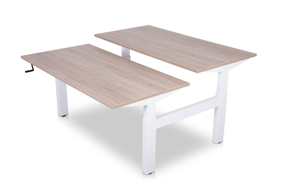 TwinWorks bureaus zijn ideaal geschikt voor medewerkers welke vaak met elkaar moeten overleggen.  Deze duo-werkplek is in hoogte verstelbaar met behulp van handslinger. De werkplekken kunnen afzondelijk van elkaar in hoogte worden versteld. Het 25 mm dikke blad is afgewerkt met een melamine toplaag en met een PVC stootrand in dezelfde kleur. Deze Bench werkplek is geheel ontwikkeld op de huidige arbo voorschriften. Een heerlijk bureau om aan te werken.
