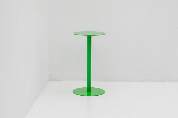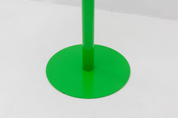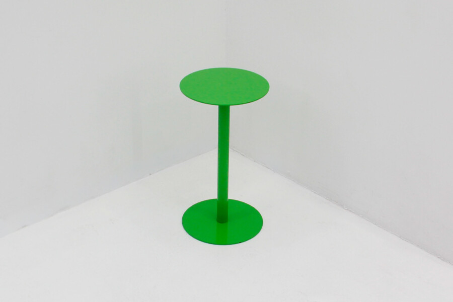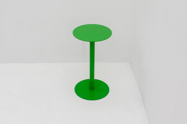 Het stevige metalen blad van 5 mm dik rust op een stabiele kolompoot, volledig uitgevoerd in dezelfde groene tint voor een elegant, uniform geheel. Met een diameter van 40 cm en een hoogte van 54,5 cm is de tafel compact maar functioneel, ideaal naast een fauteuil, bank of vergadertafel.
