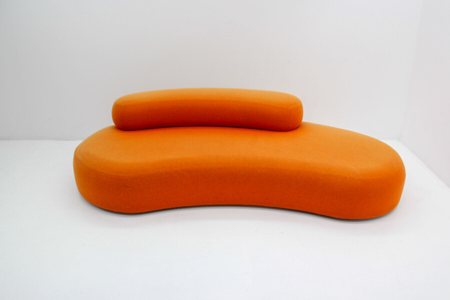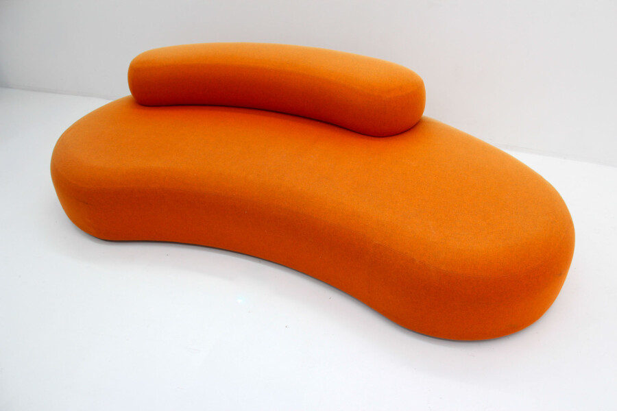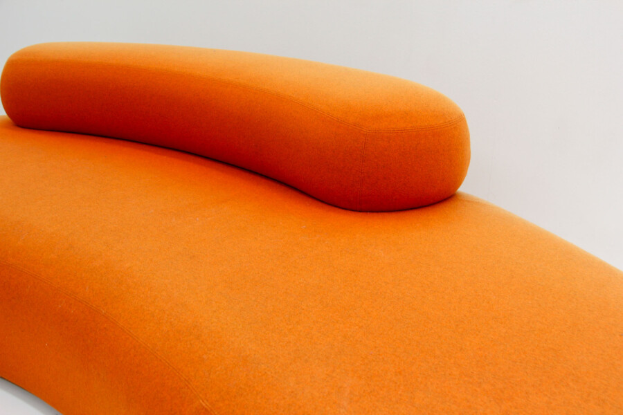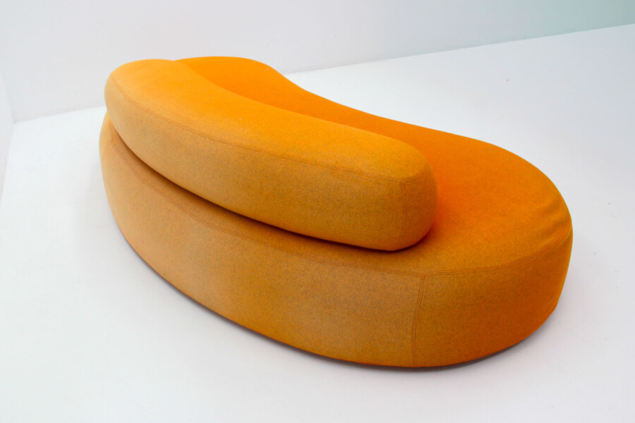 De Bubble Rock Sofa is geen doorsnee zitmeubel – het is een statement piece dat elke ruimte direct karakter geeft. De organische vormen zorgen voor een speels effect en nodigen je direct uit om gebruik te maken van de bank. De zachte ronde vormen gecombineerd met de moderne uitstraling brengen direct sfeer in jouw omgeving. Ideaal voor verwgader/ en wachtruimtes, lounges en kantines. De oranje stoffering heeft een warme uitstraling en maakt het meubel nog unieker. De lichte verkleuringen lezen niet als “slijtage”, maar als patina met verhaal. Ideaal voor vergader- en wachtruimtes, lounges en kantines die nét dat beetje beleving zoeken.