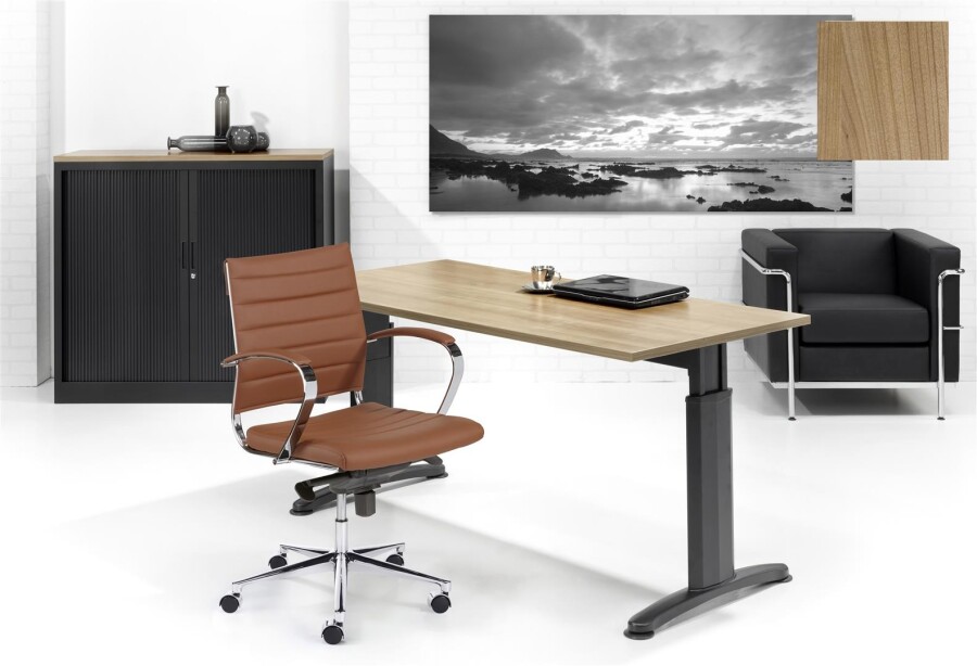 Met een Basic-T bureau maakt u de keus voor een modern en zakelijk bureau; kwalitatief goed en met een scherpe prijs. Dit bureau is zeer eigentijds en leverbaar in diverse maten en kleurcombinaties. Het onderstel is in hoogte verstelbaar, en is voorzien van stelvoetjes om oneffenheden in de vloer op te kunnen vangen. Het 25 mm dikke blad is afgewerkt met een melamine toplaag en met een PVC stootrand in dezelfde kleur. Het bureau Basic-T is geheel ontwikkeld op de huidige arbo voorschriften. Een heerlijk ruim bureau om effectief aan te werken.