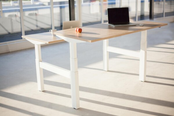 Duo Dynamic bureaus zijn ideaal geschikt voor medewerkers welke vaak met elkaar moeten overleggen.  Deze duo-werkplek is elektrisch in hoogte verstelbaar. De werkplekken kunnen afzondelijk van elkaar in hoogte worden versteld. Het 25 mm dikke blad is afgewerkt met een melamine toplaag en met een PVC stootrand in dezelfde kleur. Deze Bench werkplek is geheel ontwikkeld op de huidige arbo voorschriften. Een heerlijk bureau om zowel staand als zittend aan te werken.