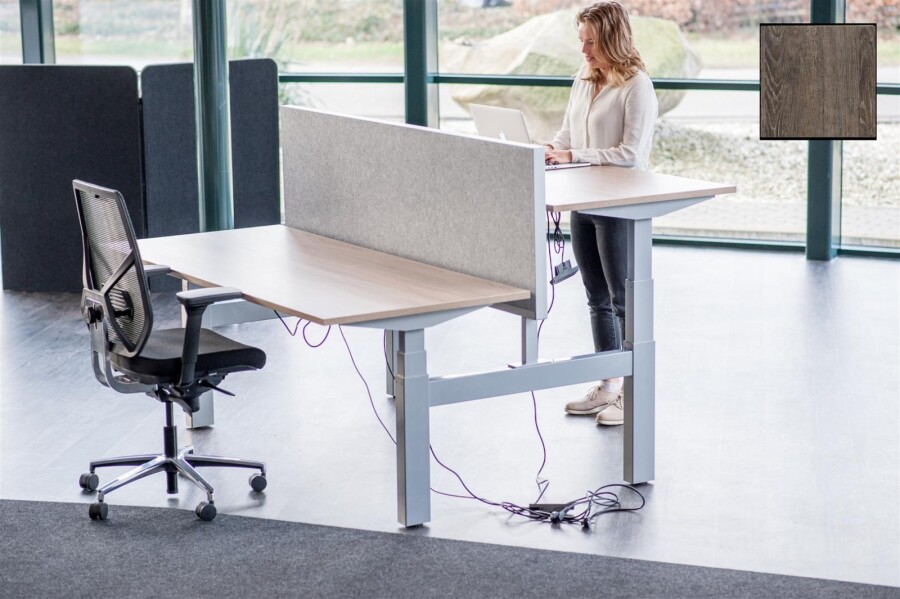 Duo Dynamic bureaus zijn ideaal geschikt voor medewerkers welke vaak met elkaar moeten overleggen.  Deze duo-werkplek is elektrisch in hoogte verstelbaar. De werkplekken kunnen afzondelijk van elkaar in hoogte worden versteld. Het 25 mm dikke blad is afgewerkt met een melamine toplaag en met een PVC stootrand in dezelfde kleur. Deze Bench werkplek is geheel ontwikkeld op de huidige arbo voorschriften. Een heerlijk bureau om zowel staand als zittend aan te werken.
