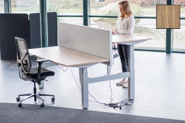 Duo Dynamic bureaus zijn ideaal geschikt voor medewerkers welke vaak met elkaar moeten overleggen.  Deze duo-werkplek is elektrisch in hoogte verstelbaar. De werkplekken kunnen afzondelijk van elkaar in hoogte worden versteld. Het 25 mm dikke blad is afgewerkt met een melamine toplaag en met een PVC stootrand in dezelfde kleur. Deze Bench werkplek is geheel ontwikkeld op de huidige arbo voorschriften. Een heerlijk bureau om zowel staand als zittend aan te werken.