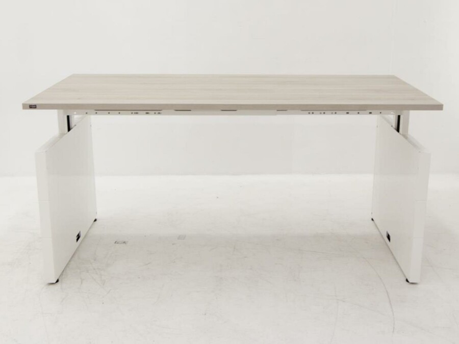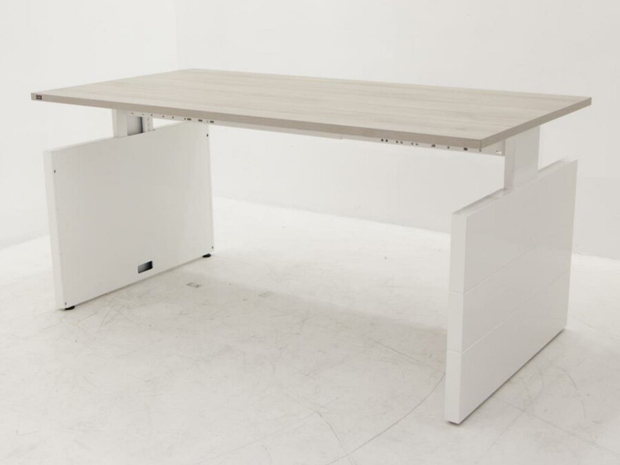 Bureau Nova 160x80cm (bxd) - werkblad molina essen, wangpoot wit, hoogte instelbaar