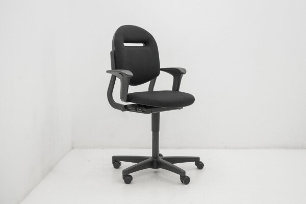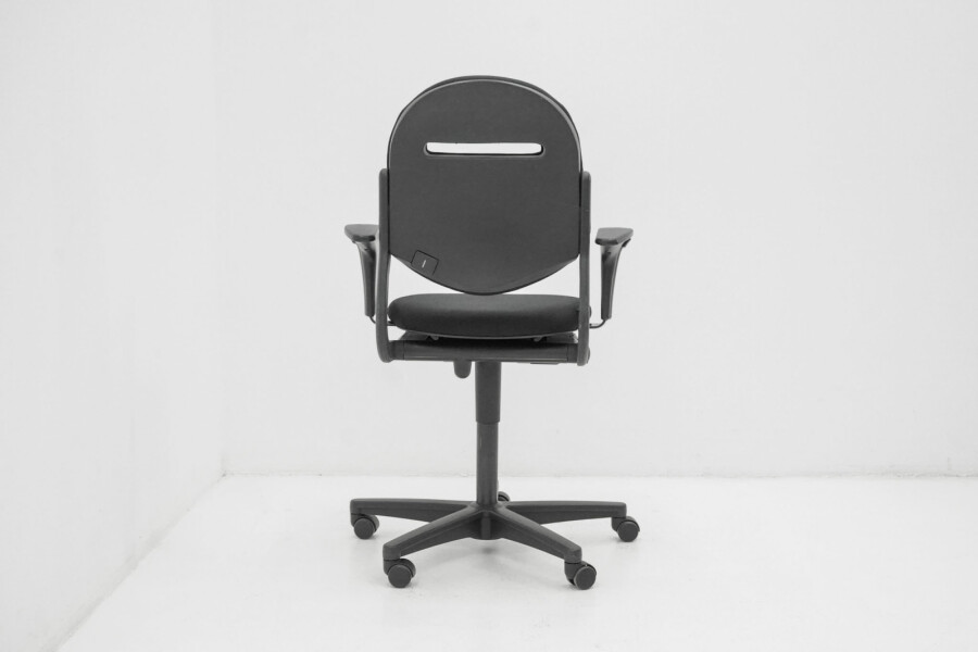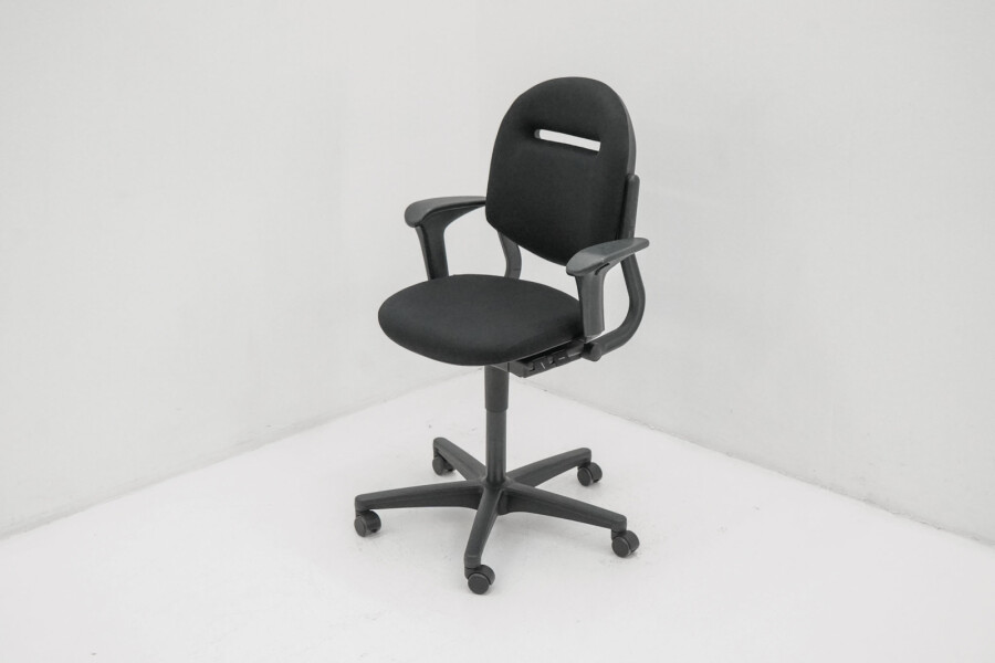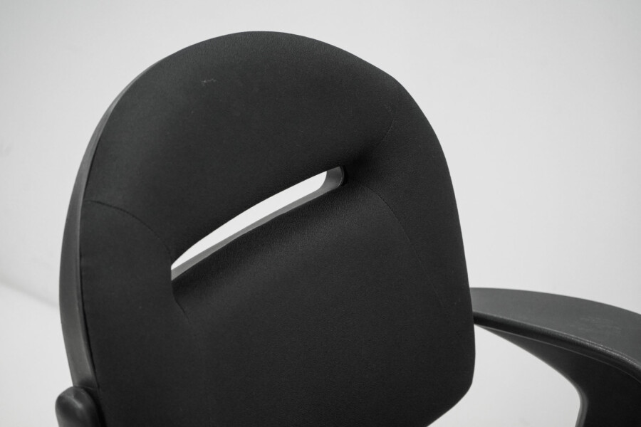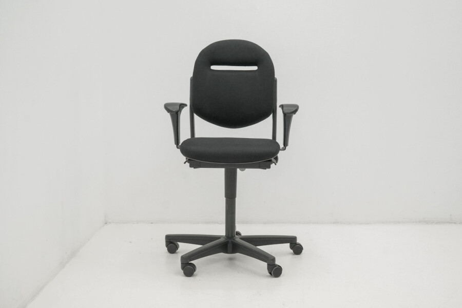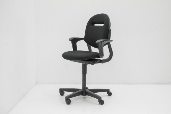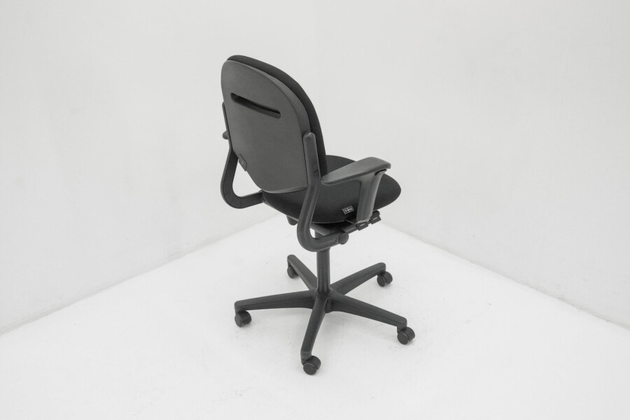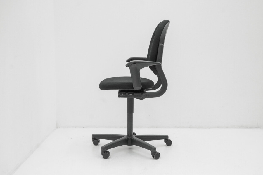 De zwarte Siena-bekleding geeft de stoel een professionele uitstraling, terwijl de 2D-armleggers verstelbaar zijn in hoogte en breedte voor extra comfort. Bij THO wordt deze tweedehands bureaustoel technisch gecontroleerd en klaar gemaakt voor een tweede werkleven.