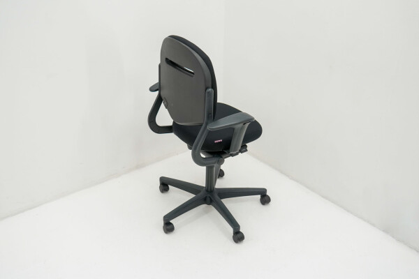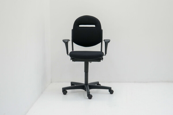 Bij THO geloven we in circulariteit en langdurig gebruik. Daarom is deze Ahrend 220 opnieuw gestoffeerd door onze vakmensen in de slijtvaste Siena-stof, zwart. Zo oogt en voelt de stoel weer als nieuw – zonder onnodige verspilling van materialen. Het eco-design van Ahrend sluit daar naadloos op aan: doordacht, onderhoudsvriendelijk en ontwikkeld met oog voor recyclebaarheid.