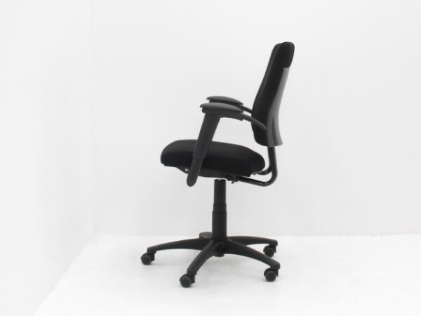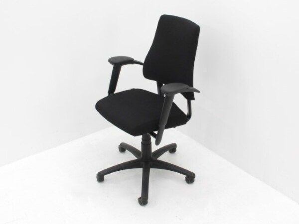 De BMA Axia is een moderne, ergonomische bureaustoel die comfort en functionaliteit combineert. Deze stoel is nieuw gestoffeerd in de stof Hero zwart en biedt met verstelbare zithoogte, rughoogte en 2D-armleggers de mogelijkheid om volledig aan te sluiten bij jouw werkhouding. Het synchroonmechaniek zorgt voor dynamisch zitten, waarbij rug en zitting synchroon bewegen voor optimale ondersteuning. Dankzij het 5-poots onderstel en stevige kunststof constructie is de stoel stabiel en duurzaam, terwijl de standaard harde wielen ideaal zijn voor gebruik op zachte vloeren.