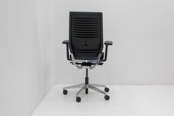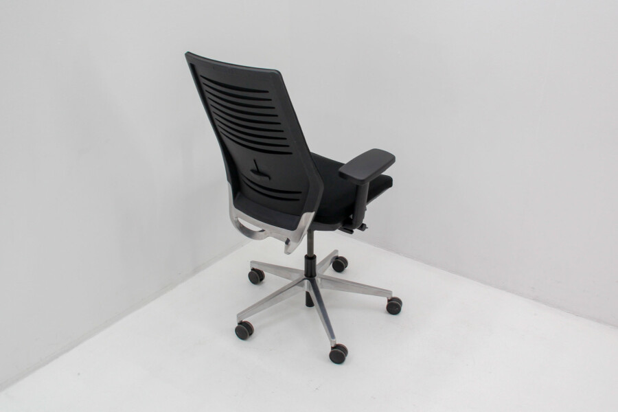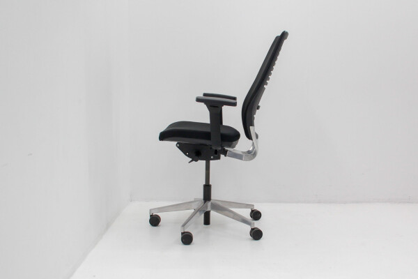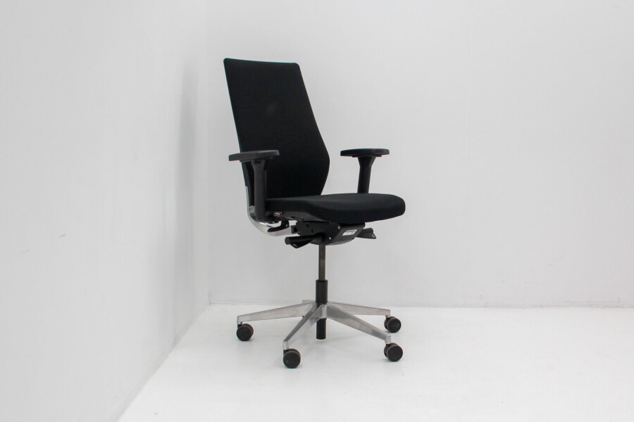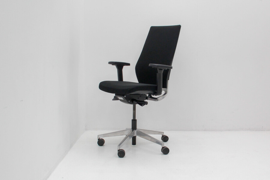 Stel de lendesteun, zithoogte en armleggers telkens opnieuw af. Het helpt om klachten te voorkomen en verhoogt het werkcomfort direct.