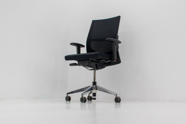 De ventilerende netwave rugleuning zorgt voor een frisse zitervaring, terwijl de zwarte stoffen zitting comfort en stevigheid biedt. Het synchroonmechaniek beweegt op een natuurlijke manier met je lichaam mee en is eenvoudig instelbaar op jouw lichaamsgewicht. Hiermee blijf je dynamisch zitten: precies de manier van werken die helpt om rug- en nekklachten te voorkomen.
