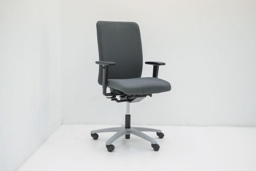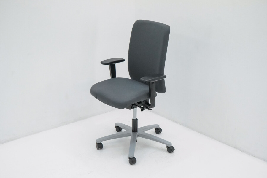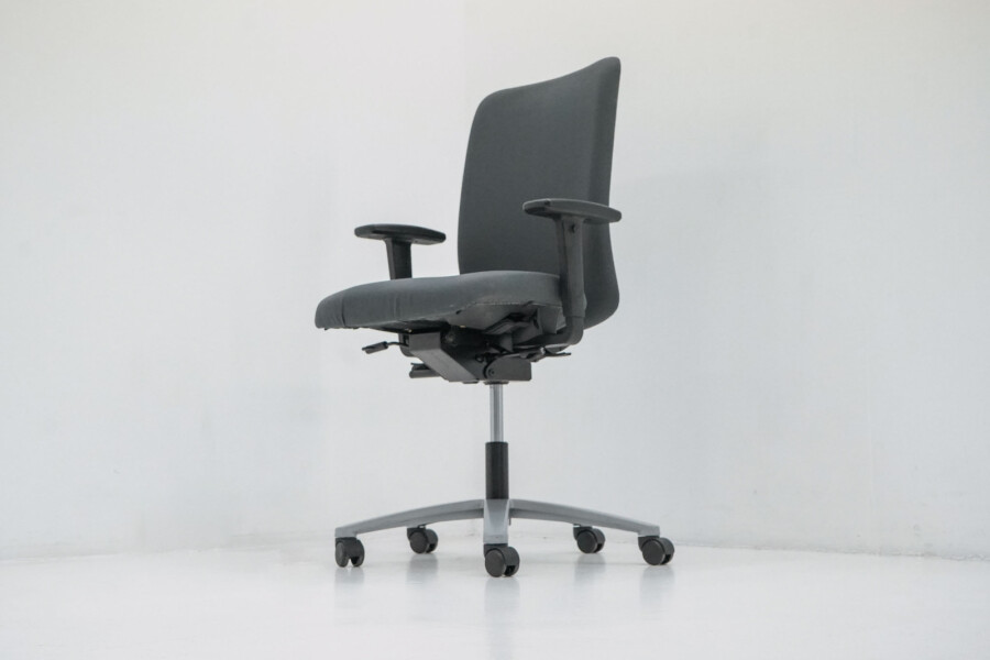 De antraciet stoffering en het aluminium onderstel zorgen voor een professionele, tijdloze uitstraling. Bij THO krijgt deze tweedehands Jet II een tweede leven: technisch gecontroleerd en klaar voor jarenlang comfortabel gebruik.