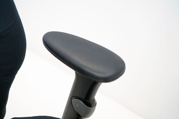De zwarte stoffering geeft de stoel een professionele en tijdloze uitstraling die moeiteloos past in moderne kantooromgevingen. De draaibare 3D-armleggers, verstelbaar in hoogte en breedte, ondersteunen armen en schouders tijdens beeldschermwerk. Dit draagt bij aan een ontspannen en gezonde werkhouding.