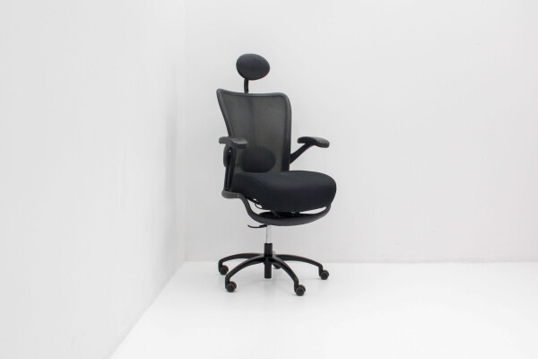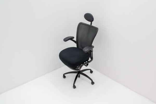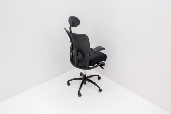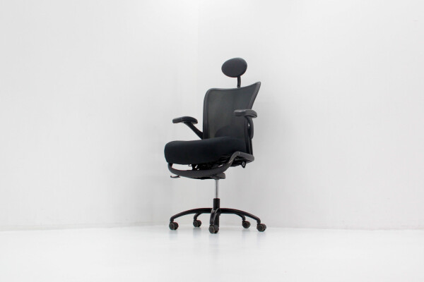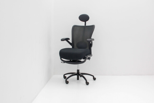 De Vitra Ypsilon is een representatieve, ergonomische bureaustoel met een luchtige netwave rug en een comfortabele stoffen zitting in zwart. Het synchroonmechaniek – instelbaar op jouw lichaamsgewicht – houdt rug en zitting in de juiste hoekverhouding, zodat je actief en ontspannen blijft zitten. Met verstelbare zithoogte, verstelbare lendesteun én verstelbare hoofdsteun stel je de stoel precies af op jouw werkdag. De royale maatvoering maakt de Ypsilon ook geschikt voor langere gebruikers of een iets hogere werkhoogte.