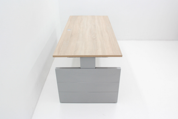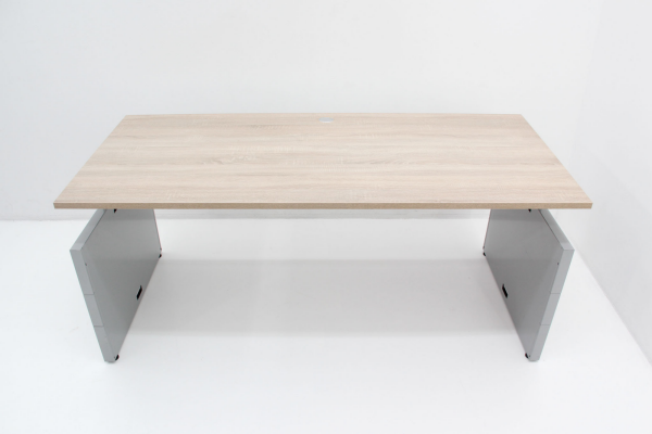Het Nova bureau 180×80 cm is een strakke, professionele werkplek voor kantoren en thuiswerkomgevingen. Het robuuste 25 mm melamine blad in Robson eiken oogt warm en is onderhoudsvriendelijk, terwijl het wangenpoot-onderstel in aluminiumgrijs rust en orde in de ruimte brengt. De instelbare hoogte (63,5–86 cm) maakt het eenvoudig om de juiste werkhouding te vinden en met de kabeldoorvoer werk je netjes en georganiseerd.