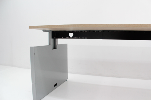 Rustige werkplek – wangenpoot design schermt kabels en onderbouw optisch af