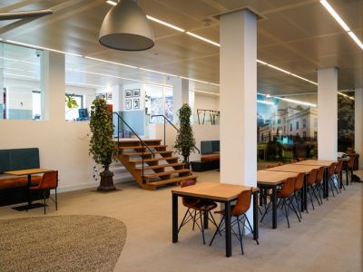 In één dag tijd installeerden we 35 werkplekken, inclusief bekabelingsmanagement. Ook namen we het oude meubilair retour. Dit gaan we zoveel mogelijk opknappen en opnieuw inzetten, op een andere bestemming.
