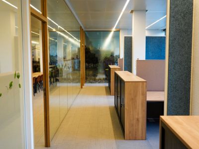 In de tussentijd maakte onze collega Alinda tekeningen om de inrichting met de zit-sta-bureaus te visualiseren. Daarna was het tijd om te leveren, plaatsen en monteren. Dat deden we op een dag waarop DAAN zo min mogelijk hinder had van de werkzaamheden en een deel van de medewerkers kon thuiswerken.