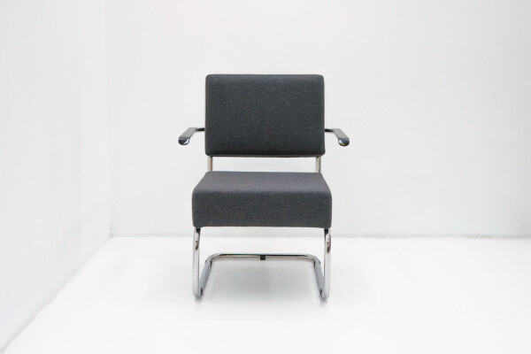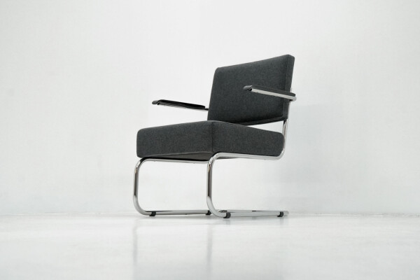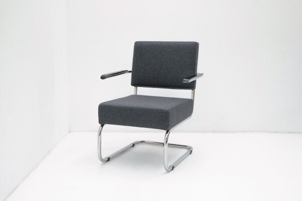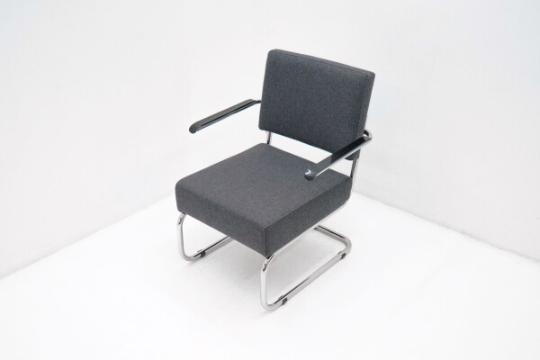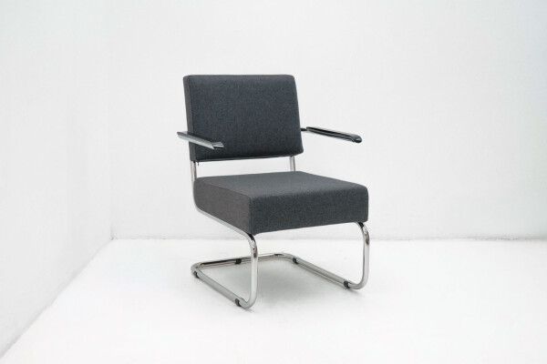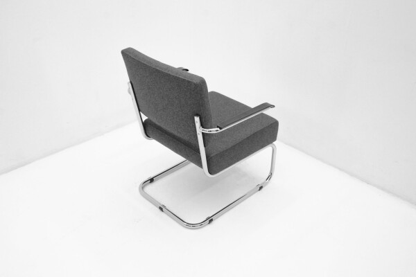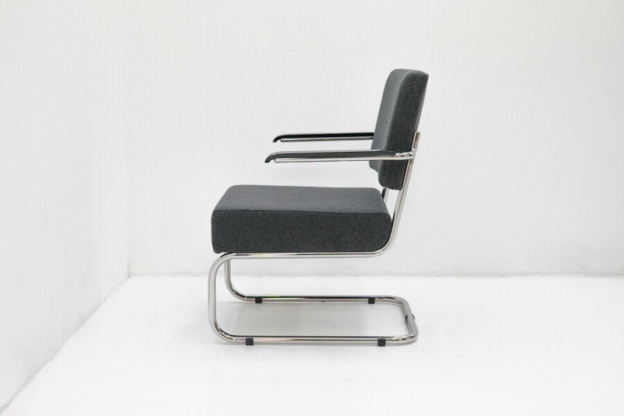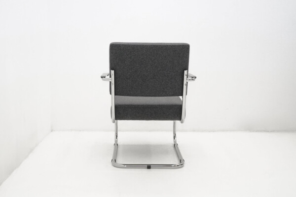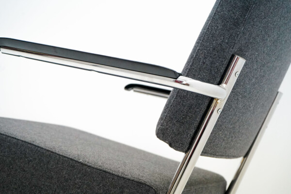 Tijdloos design – grijze viltbekleding en chroom sledeonderstel passen in elk kantoor