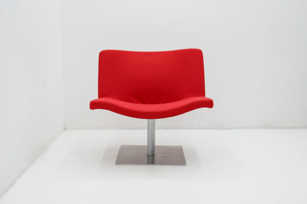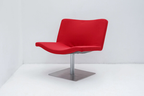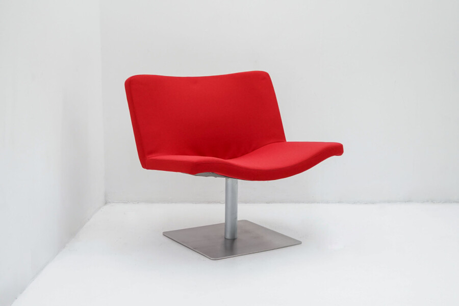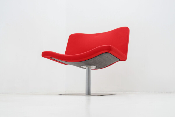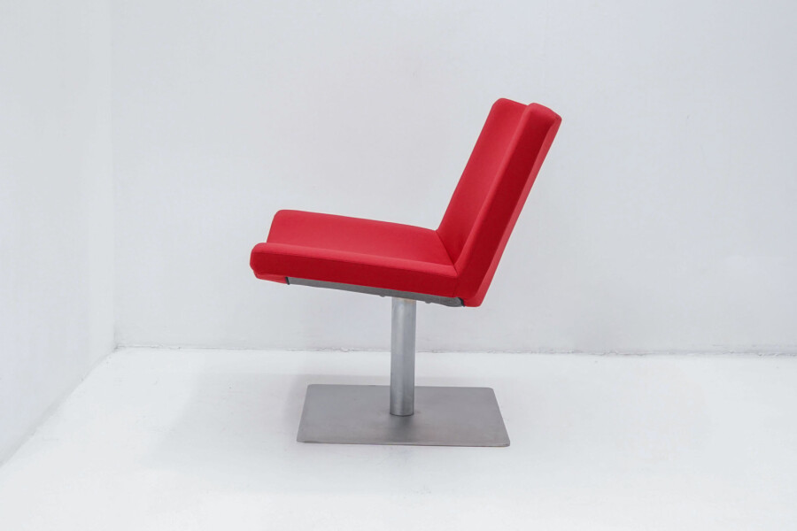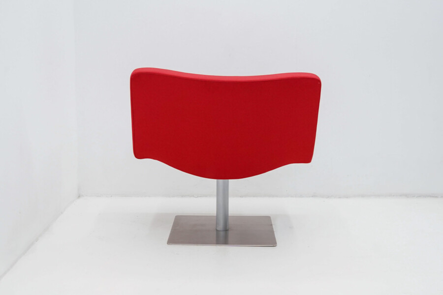 Die golvende vormgeving en het stevige aluminium kolompoot onderstel zijn ontworpen om op te vallen én om je rug comfortabel te ondersteunen. De originele rode stof is in goede staat, maar bij THO geven we je de vrijheid om ‘m helemaal opnieuw te stofferen. Kies een kleur die bij jouw kantoor, woon- of werkruimte past. Zo krijgt deze designklassieker precies de uitstraling die jij wilt én blijft ‘ie circulair.