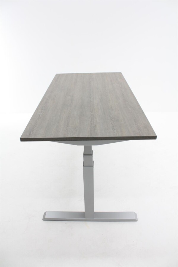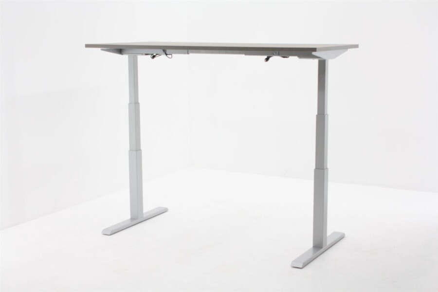 Vol elektronische tweetraps zit-sta bureau. In breedte verstelbaar van 110 tot 170 cm. In hoogte verstelbaar met een elektrische aandrijving en een losse hoog-laag bediening van 64 tot 130 cm. Dynamische belasting tot 75 kg en statische belasting tot 140kg.