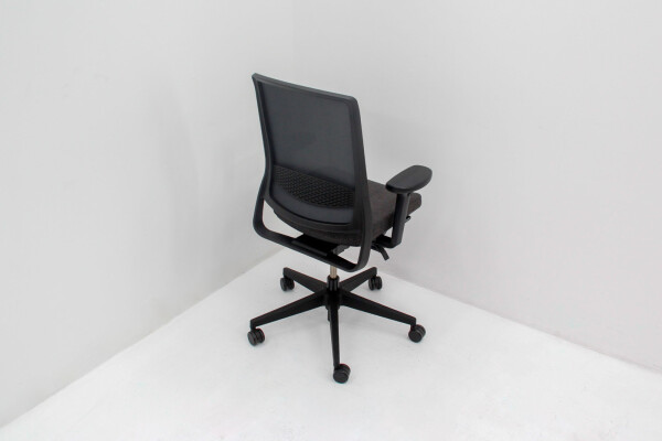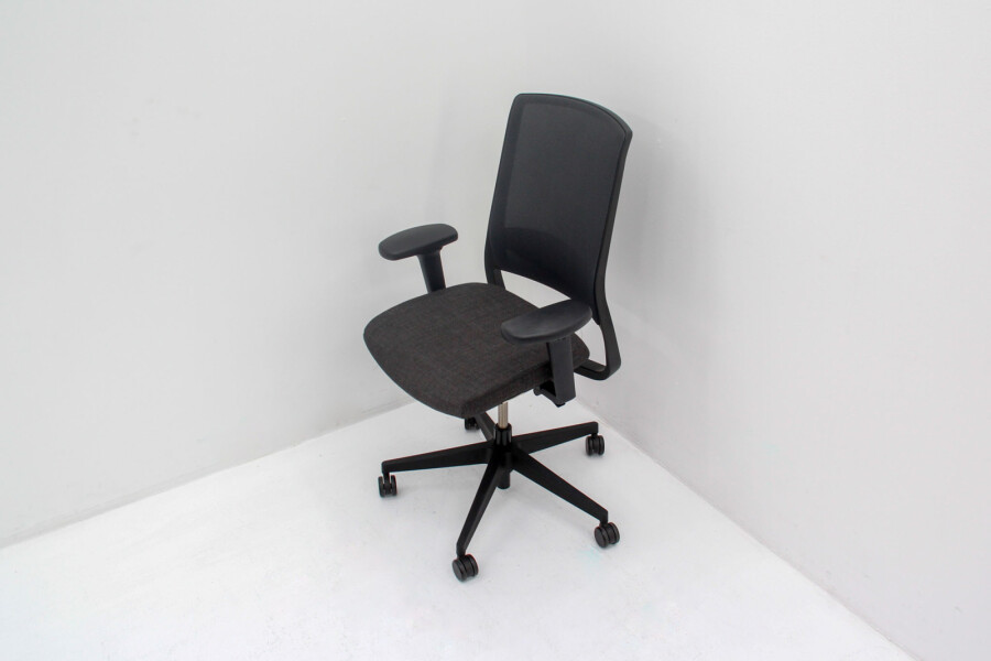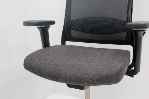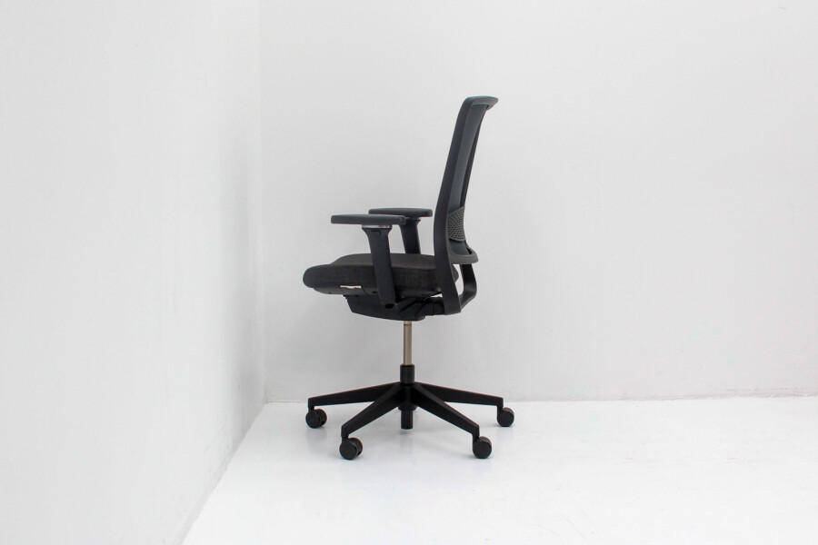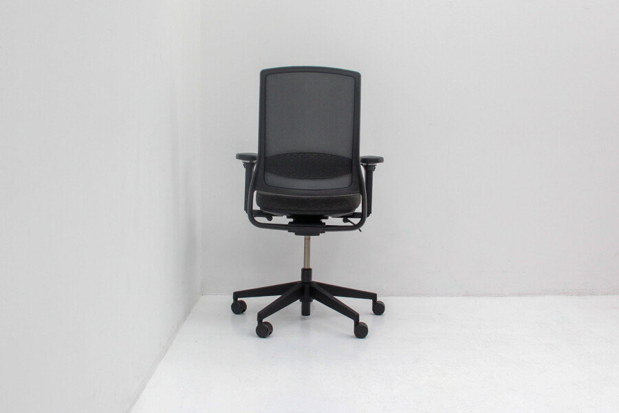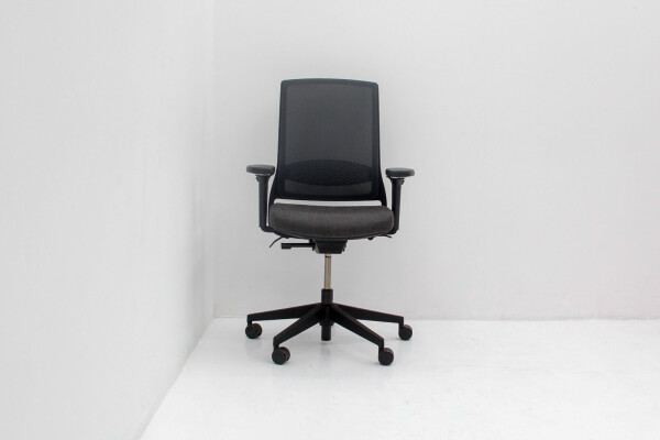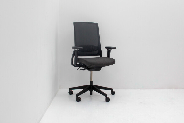 De netwave rugleuning ventileert uitstekend en beweegt subtiel met je houding mee. De grof geweven, antracietkleurige zitting biedt duurzaam zitcomfort met een professionele uitstraling. Met de verstelbare lendesteun creëer je in een handomdraai de juiste ondersteuning voor je onderrug – goed voor een gezonde, actieve werkhouding.