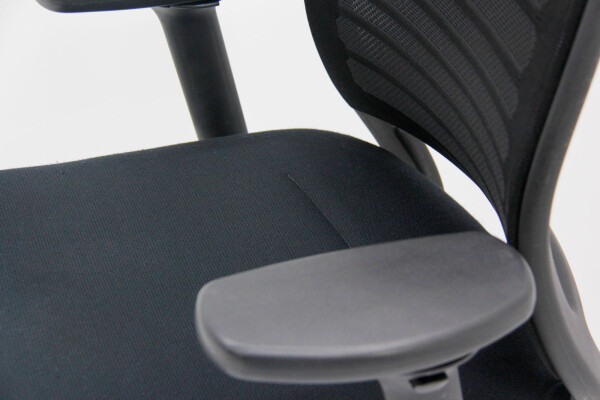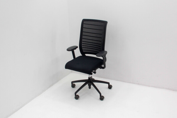 De Interstuhl Hero 172H is gebouwd voor flexibel werken: een ademende netwave rug met verstelbare lendensteun houdt je fris en gefocust, terwijl het synchroonmechaniek zich automatisch laat afstemmen op jouw lichaamsgewicht. De royale zitmaten, 4D-armleggers en instelbare zitdiepte zorgen dat je moeiteloos de juiste werkhouding vindt – de basis voor comfortabel én productief werken, de hele dag door.