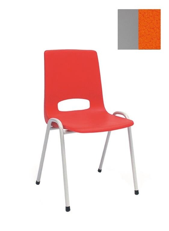 Kantinestoel Arena in kunststof - oranje - aluminium grijs