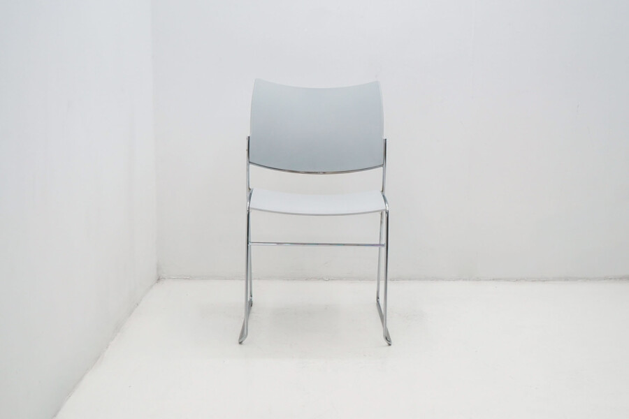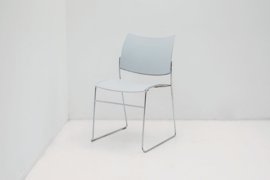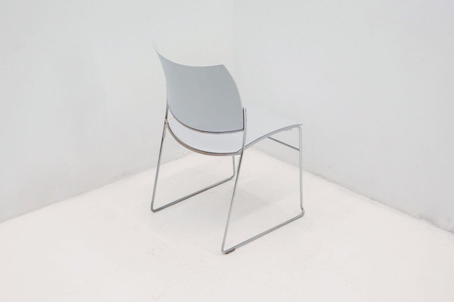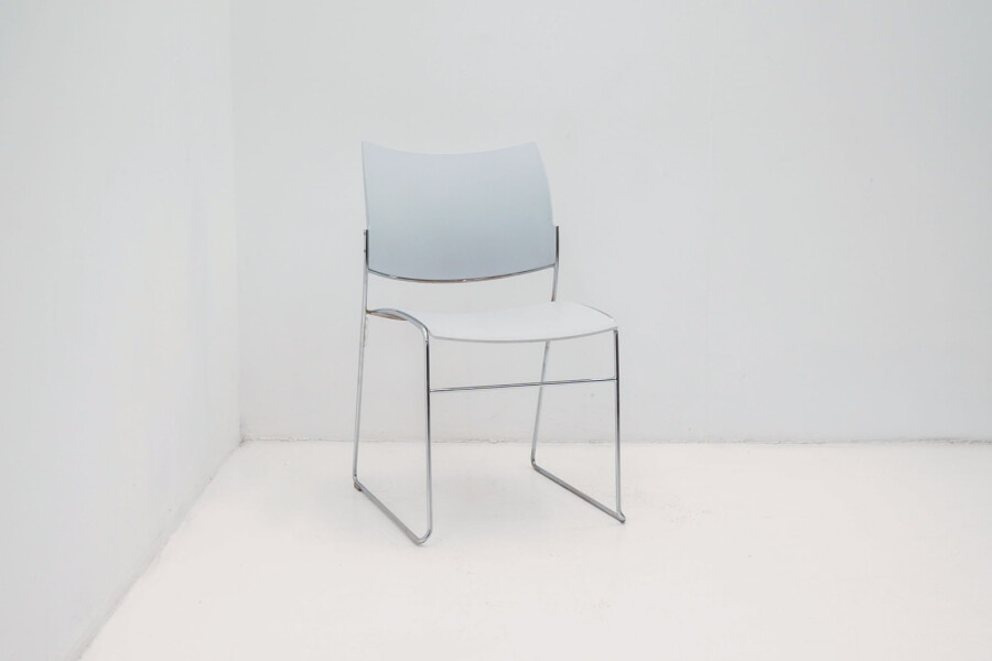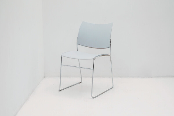 De kunststof kuip is ergonomisch gevormd en biedt verrassend veel zitcomfort, ook bij langdurig gebruik. Juist zonder armleggers komt het minimalistische ontwerp nóg beter tot zijn recht. Dat betekent: meer bewegingsvrijheid, eenvoudiger aanschuiven aan tafels en efficiënter stapelen. Met een zithoogte van 45 cm sluit deze stoel perfect aan op vergadertafels, kantinetafels en projectinrichtingen. Het slanke sledeonderstel in chroom geeft de stoel een moderne, lichte uitstraling én zorgt voor stabiliteit op diverse vloertypen. De grijze kuip is neutraal en veelzijdig en inzetbaar in vrijwel elk interieurconcept.