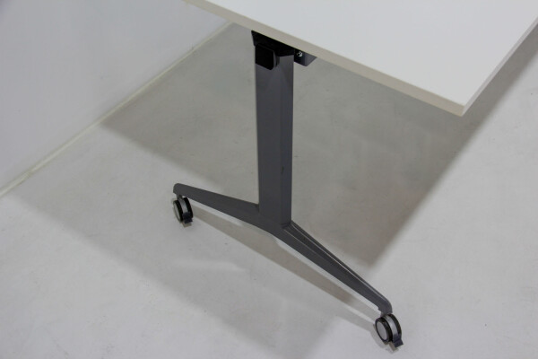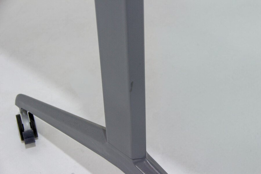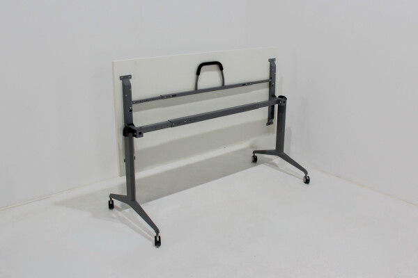 Het 25 mm dikke melamine blad in helder wit zorgt voor een professionele uitstraling en is bestand tegen intensief gebruik. Het 4-poots onderstel in aluminiumkleur is stevig gelast en biedt stabiliteit die je mag verwachten van hoogwaardige kantoormeubelen. Door de handige hendel is de tafel eenvoudig inklapbaar, waarna je hem dankzij de vier geremde wielen moeiteloos kunt verplaatsen of opslaan.