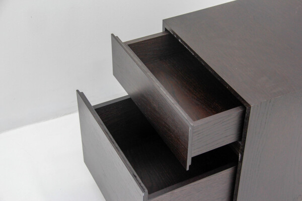Het More ladeblok is een compacte, stijlvolle allrounder voor elke werkplek. Met zijn donkere houtfineer straalt het rust en warmte uit – precies wat je wilt in een georganiseerde kantooromgeving of thuiskantoor. Dankzij het bescheiden formaat schuif je het ladeblok moeiteloos onder (zit-)bureaus of naast een vergadertafel.