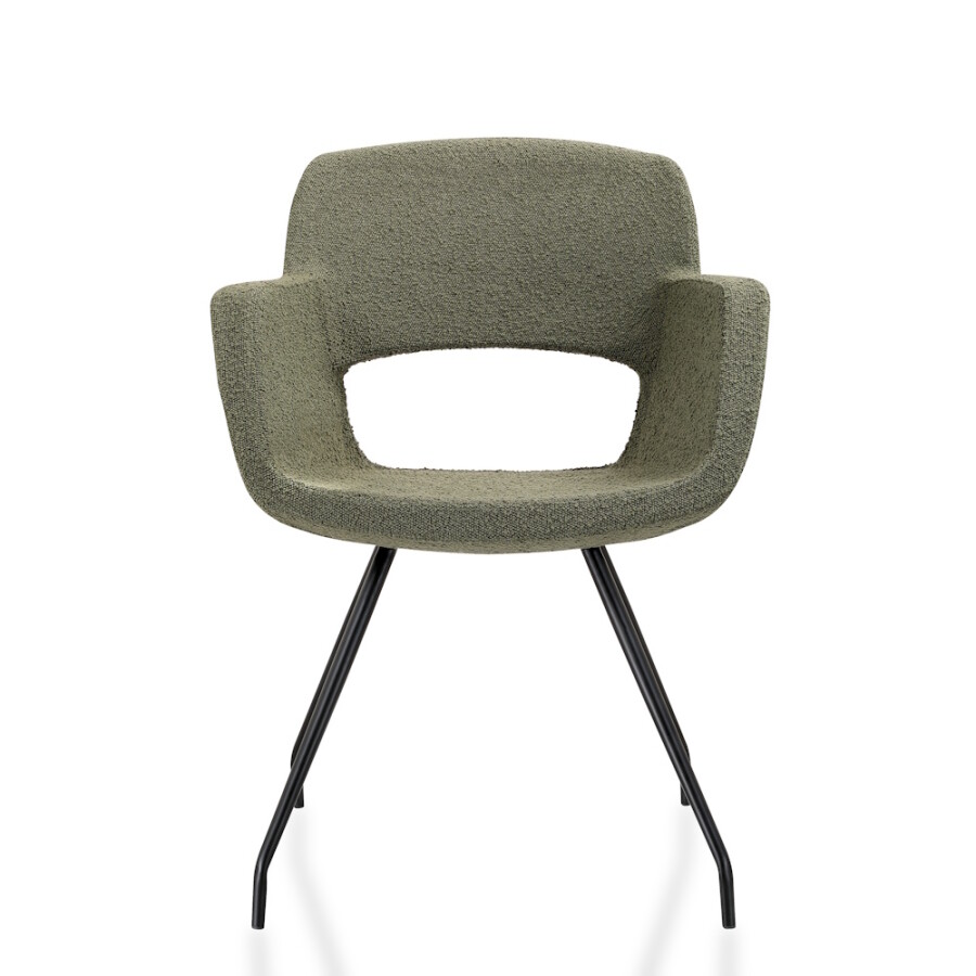 De THO Luma is een trendy 4-poots vergaderstoel met een zachte groen kleurige bouclé-teddy stoffering. De royale kuip met geïntegreerde armleggers biedt direct comfort, terwijl het zwart gelakte frame zorgt voor een strakke, professionele uitstraling. Perfect voor vergaderruimtes, projectinrichting en moderne thuiswerkplekken.