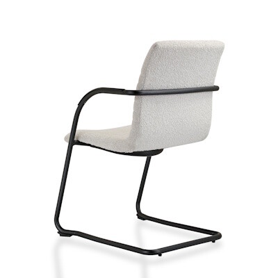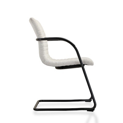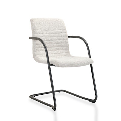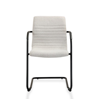 De THO Luma Slede is een trendy vergaderstoel met een rijke bouclé-teddy stoffering. De zachte, tactiele look voegt warmte toe aan elke ruimte, terwijl het slanke zwart gelakte aluminium sledeframe zorgt voor stabiliteit en een moderne, lichte uitstraling. Dankzij de geïntegreerde armleggers zit je ontspannen – ideaal voor overleg, workshops of wachtruimtes.