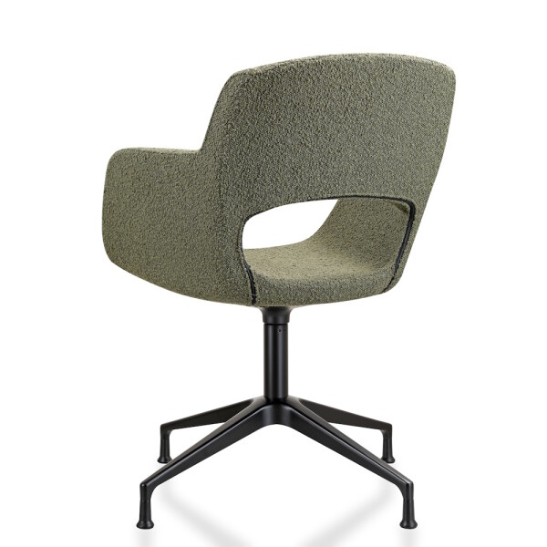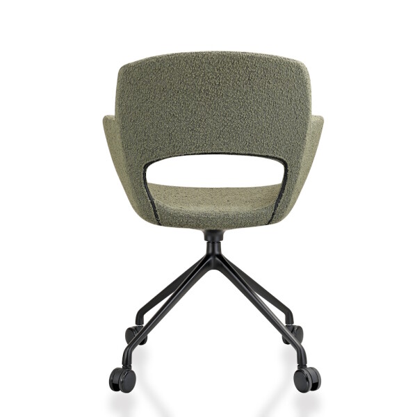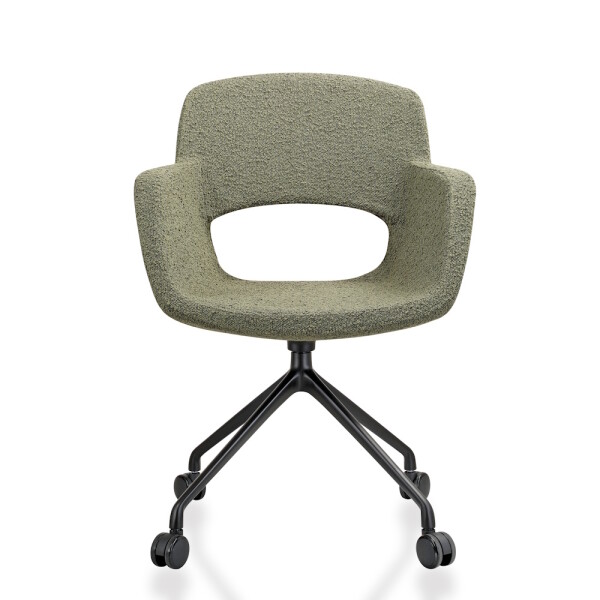 De THO Luma Verrijdbaar is de draaibare variant binnen onze Luma-lijn: een moderne vergaderstoel met zachte Groen bouclé-teddy bekleding en een elegant, zwart gelakt metalen spinpoot onderstel. De royale kuip met geïntegreerde armleggers geeft direct comfort; de draaibare zitting zorgt voor soepele bewegingsvrijheid tijdens meetings en brainstorms.