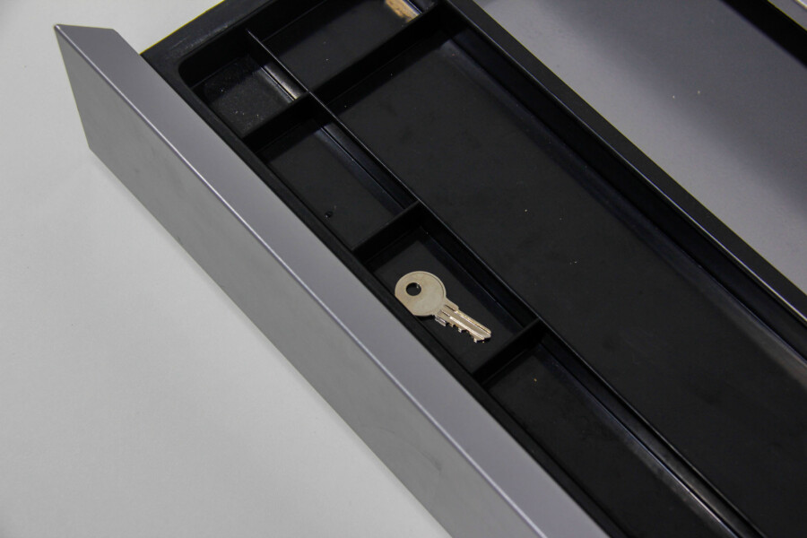 De lade is universeel monteerbaar onder vrijwel ieder werkblad en biedt voldoende ruimte voor persoonlijke items, schrijfwaren, notities en kleine kantoorbenodigdheden. Dankzij het geïntegreerde pennenbakje blijven pennen en kleinere accessoires netjes gescheiden en georganiseerd.