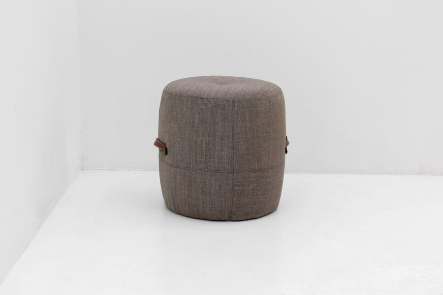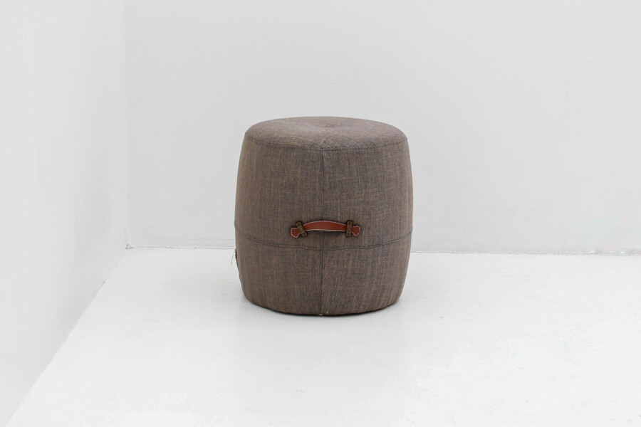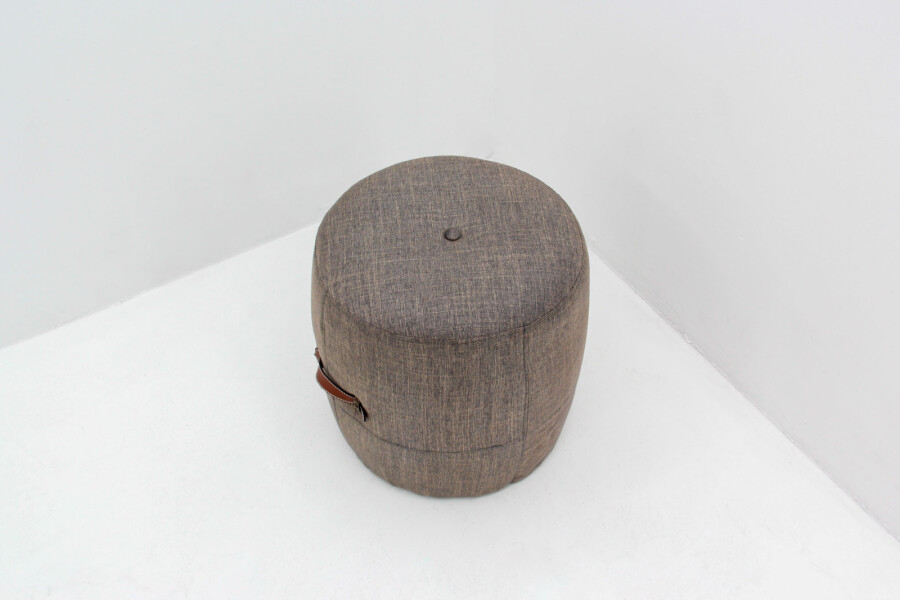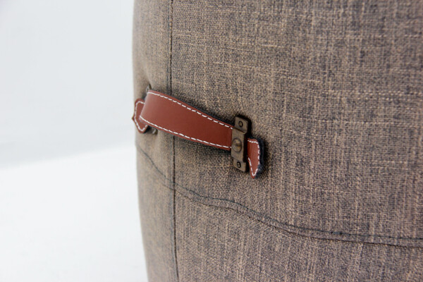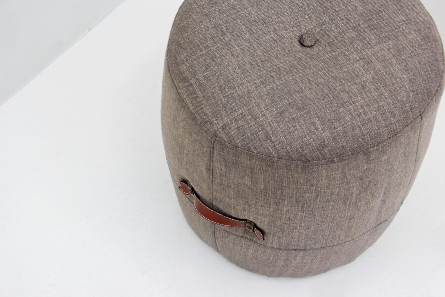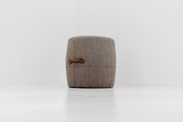 De poef is bekleed met een zachte grijs-bruine stof die rust en verfijning uitstraalt. De twee lederen handvatten aan de zijkant maken het eenvoudig om hem te verplaatsen, terwijl het ronde ontwerp en de solide vulling zorgen voor een prettig zitcomfort. Dankzij de hoogwaardige afwerking en het gebruik van duurzame materialen is deze poef niet alleen mooi, maar ook gemaakt om lang mee te gaan.