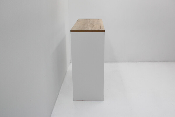 Op het legbord heb je ruimte voor 12 à 13 standaard ordners per etage, waardoor deze kast verrassend veel opbergruimte biedt ondanks zijn compacte hoogte van 105 cm.