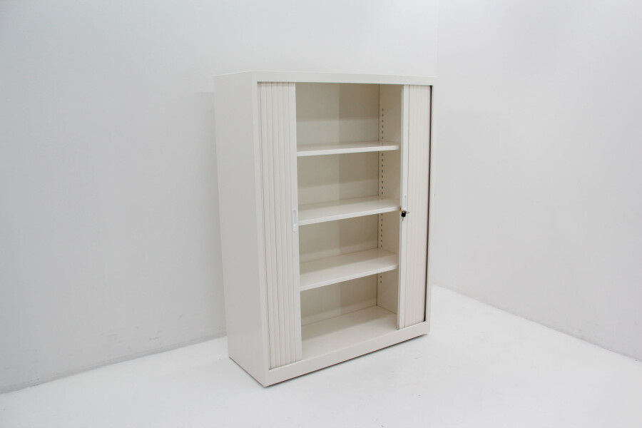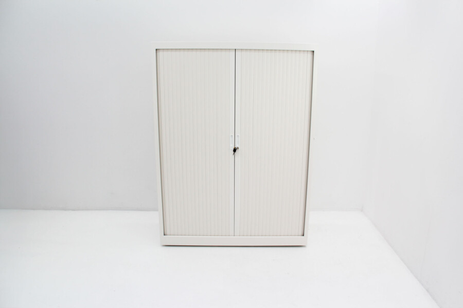 Deze roldeurkast combineert functioneel ontwerp met een frisse, moderne uitstraling in wit. Een kleur die moeiteloos past in elk kantoorinterieur. Ideaal voor wie kiest voor een nette, georganiseerde werkplek mét oog voor duurzaamheid.