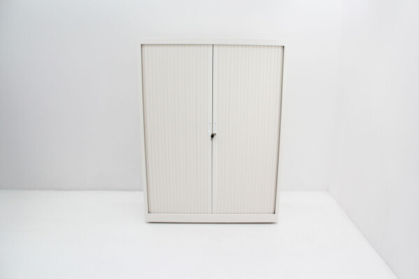 De roldeurkast 160x120x45 cm in wit RAL 9010 is een praktische en stijlvolle oplossing voor elke kantoorruimte. Dankzij de stevige metalen constructie en de krasvaste epoxy poedercoating is deze kast ontworpen om jarenlang mee te gaan, precies zoals wij bij THO geloven dat kantoormeubilair hoort te zijn: duurzaam, circulair en onderhoudsvriendelijk.