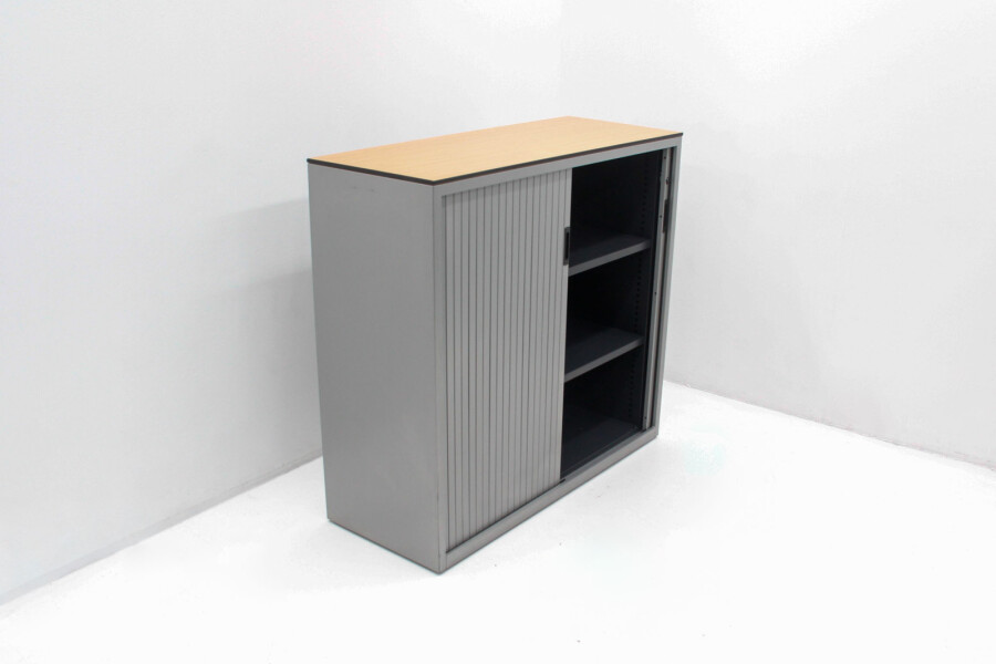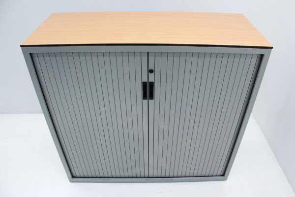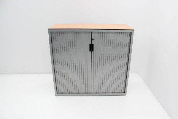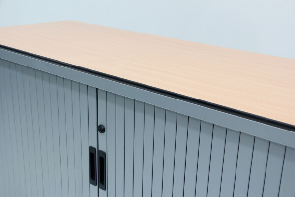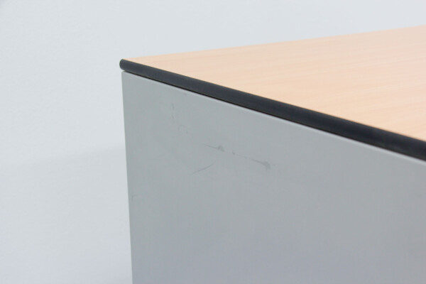 Het stevige volkern topblad in beuken (met zwarte kantenband) geeft de kast niet alleen extra uitstraling, maar ook extra functionaliteit: gebruik het blad als afzetruimte, printerplek of als subtiele scheidingsoplossing binnen de werkvloer. De kast is uitgevoerd in een tijdloze aluminiumkleur, waardoor hij moeiteloos past in zowel moderne als klassieke kantoorinterieurs.