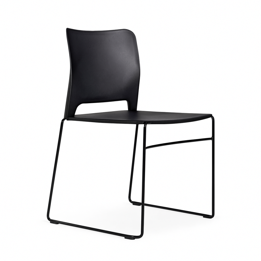 Gebruik je de S550 op een harde vloer? Kies dan voor viltglijders voor stillere zalen en extra bescherming. Op zachte vloerbedekking adviseren wij de stoel zonder glijders te bestellen: dat stapelt en schuift net even fijner.