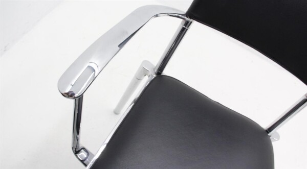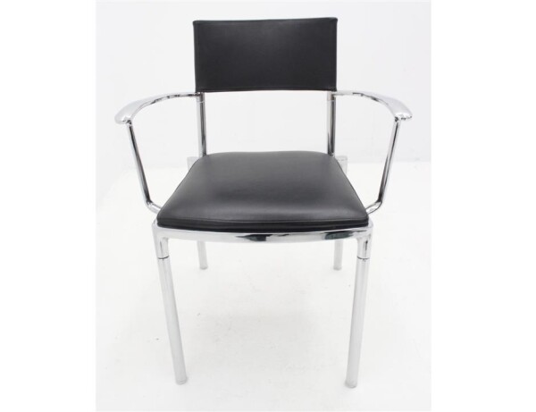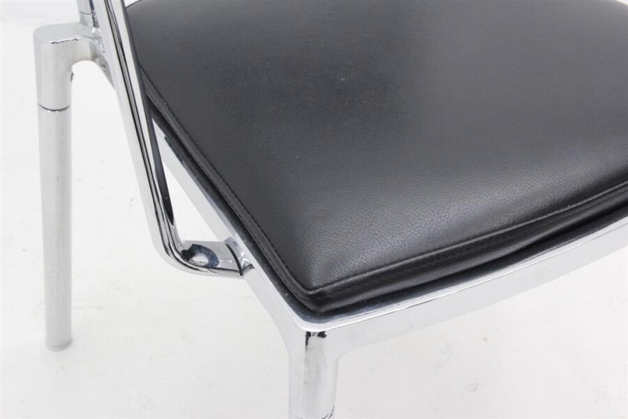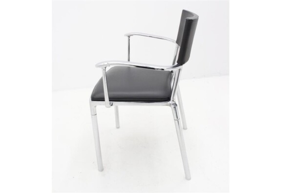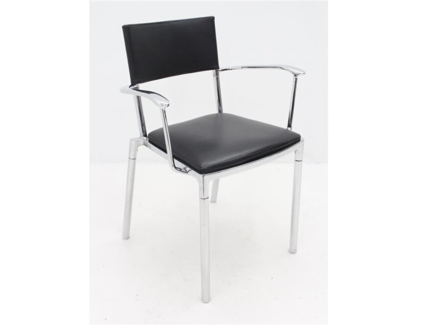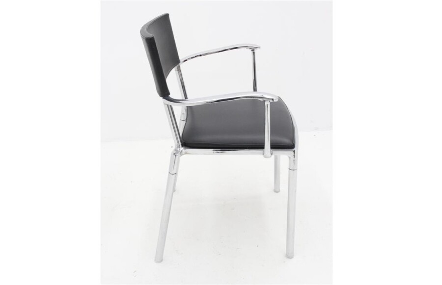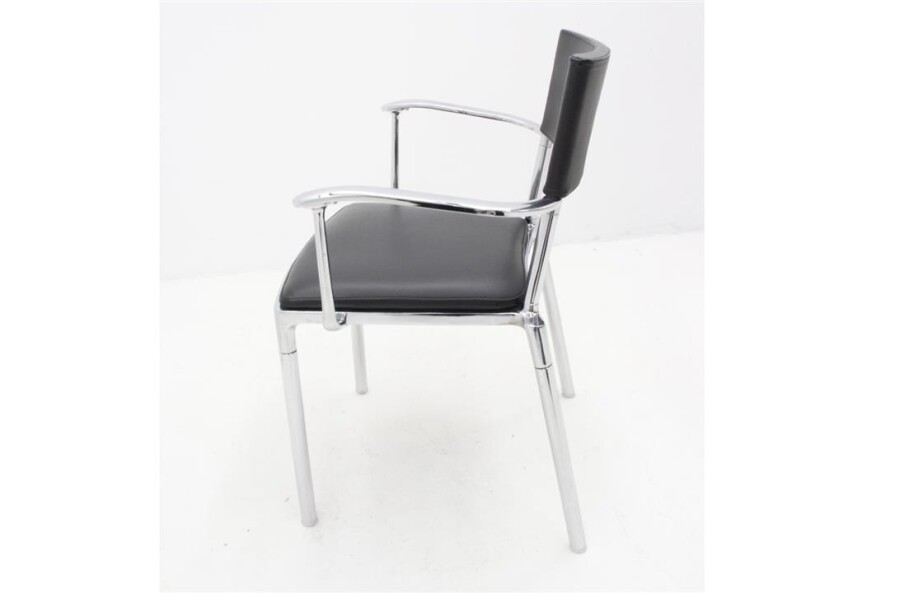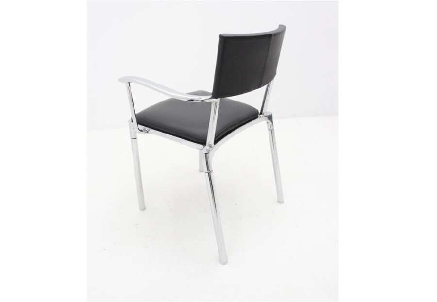 De Blitz laat goed zien waar Italiaans zitdesign sterk in is: een verfijnde uitstraling zonder overdaad. De zwarte lederen afwerking geeft de stoel een luxe en professionele look, terwijl de chroomkleurige armleggers en het metalen 4-poots onderstel zorgen voor een moderne, tijdloze basis. Daarbij is deze stoel ook stapelbaar, wat hem extra praktisch maakt in ruimtes waar flexibiliteit belangrijk is.