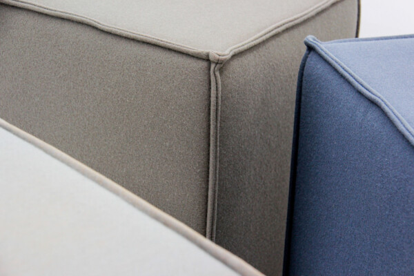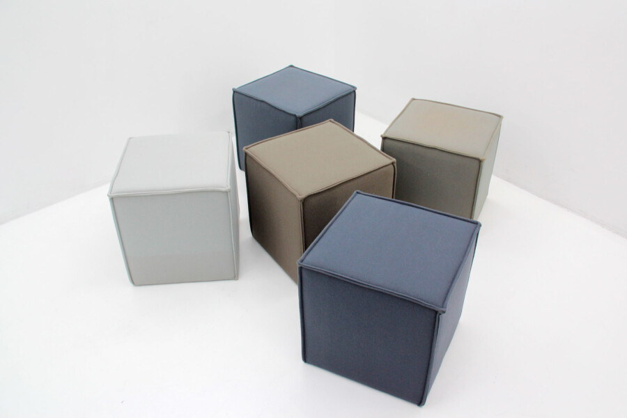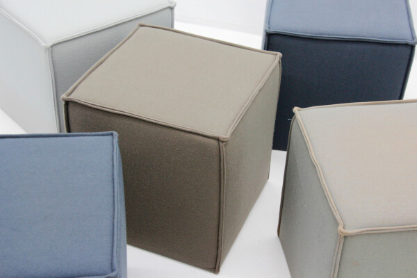 Dankzij hun kubusvorm (45x45x45 cm) zijn de poefjes eenvoudig te combineren of te verplaatsen, afhankelijk van de ruimte of setting. De zachte viltstof zorgt voor een warme, natuurlijke uitstraling, terwijl de stevige schuimvulling langdurig zitcomfort biedt. De combinatie van groen, grijs en blauw geeft het interieur een frisse, moderne uitstraling met een professionele touch.