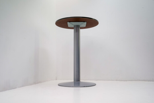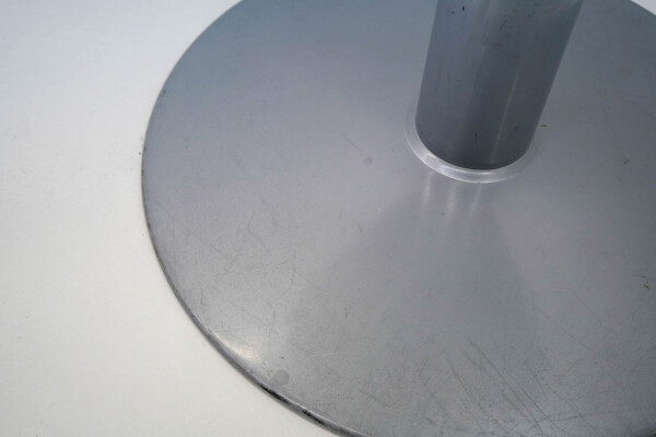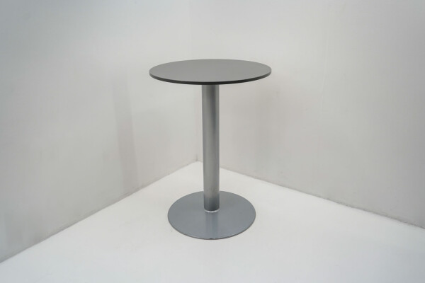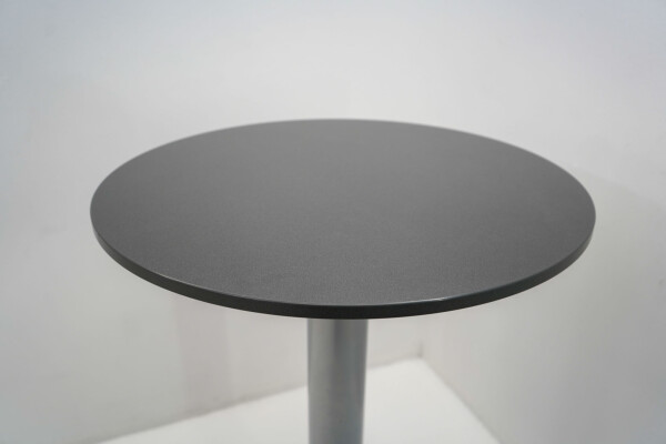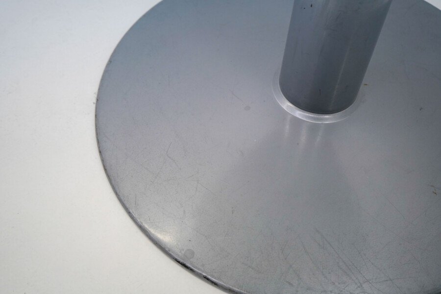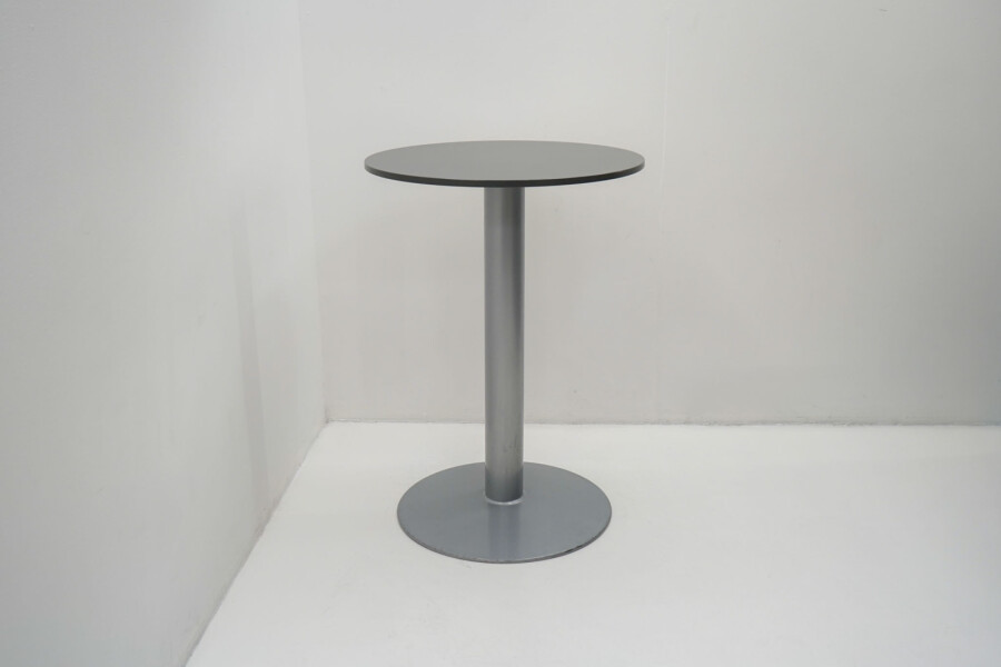 Het ronde melamine werkblad met een diameter van 80 cm biedt voldoende ruimte voor laptops, documenten of een kop koffie. De grijze kleur zorgt voor een rustige, zakelijke uitstraling die moeiteloos past binnen vrijwel elk kantoorinterieur. Het metalen onderstel met kolompoot in aluminiumkleur garandeert stabiliteit en geeft de tafel een moderne, functionele look.