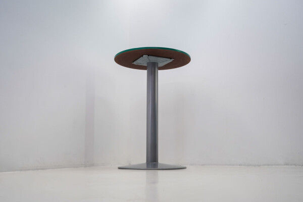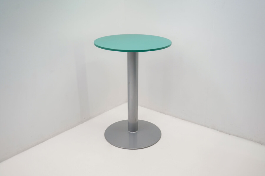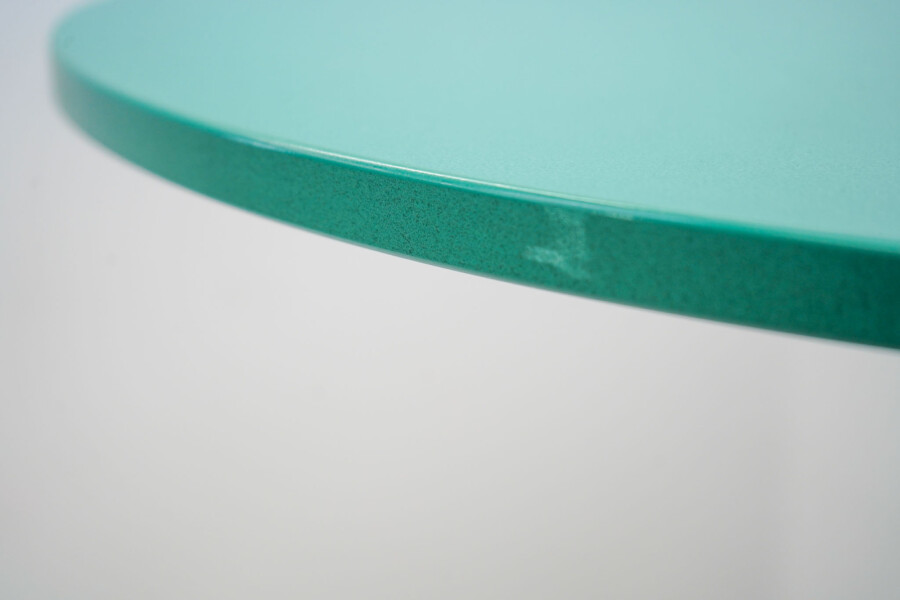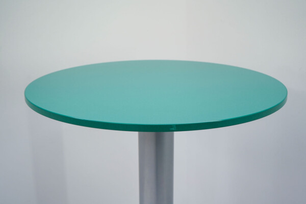 Het ronde melamine werkblad met een diameter van 80 cm biedt voldoende ruimte voor laptops, koffiekopjes of overlegmateriaal. De groene kleur zorgt voor een subtiel accent in de ruimte en brengt rust én energie tegelijk, een bewezen effect in werkomgevingen. Het metalen onderstel met kolompoot in aluminiumkleur zorgt voor stabiliteit en een tijdloze, zakelijke uitstraling.